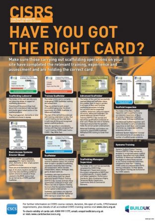 Designed to be an ideal aide-memoir to any site the poster provides a simple to follow explanation ensuring that any individual’s card can be verified prior to any scaffolding works commencing.